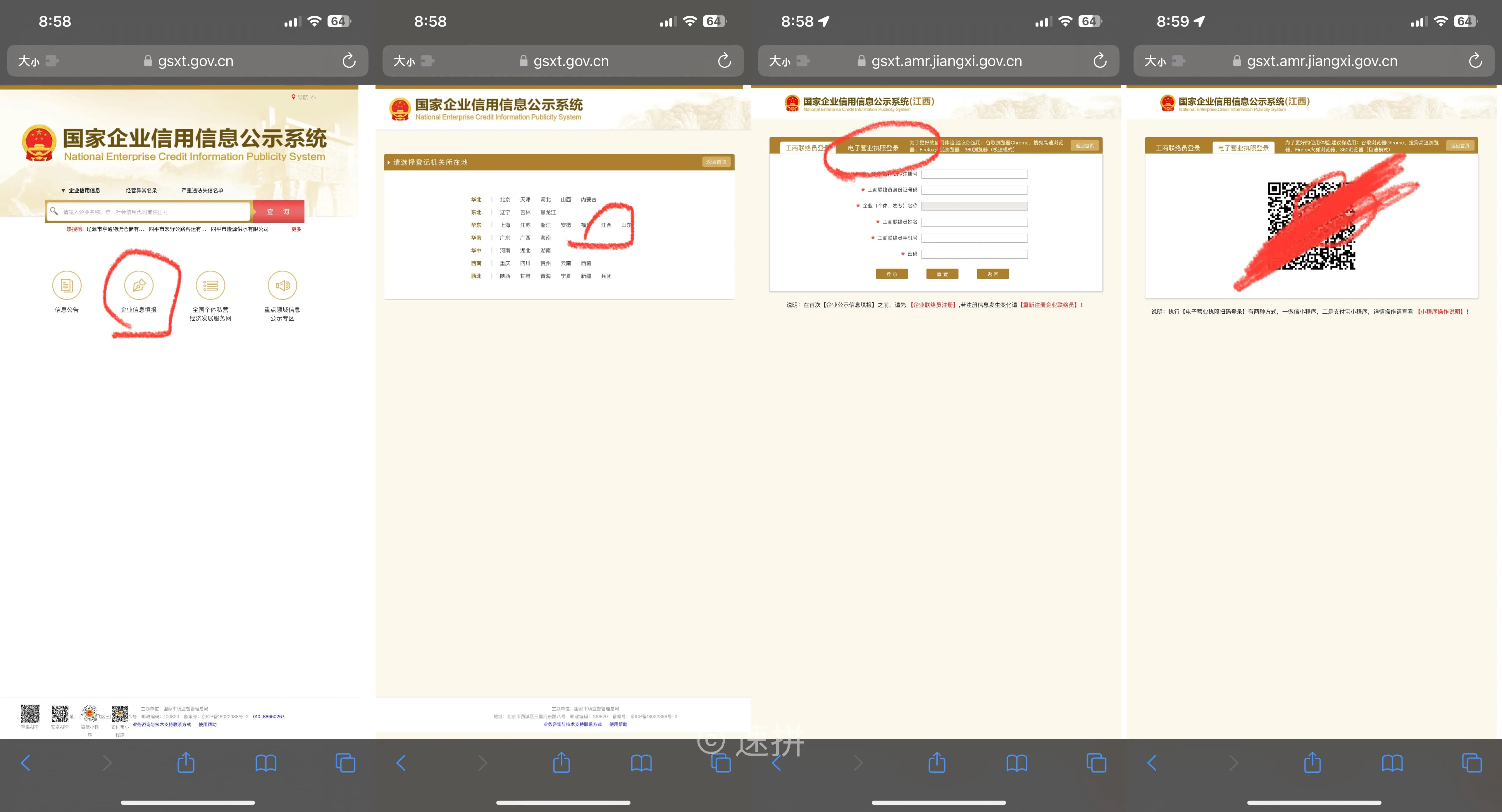 以下是江西省年审教程 其他地区http://www.gsxt.gov.cn/ 自己查询自己的省份 第一步 第二步 打开微信搜索小程序:电子营业执照然后登录下载扫第一步的二维码<