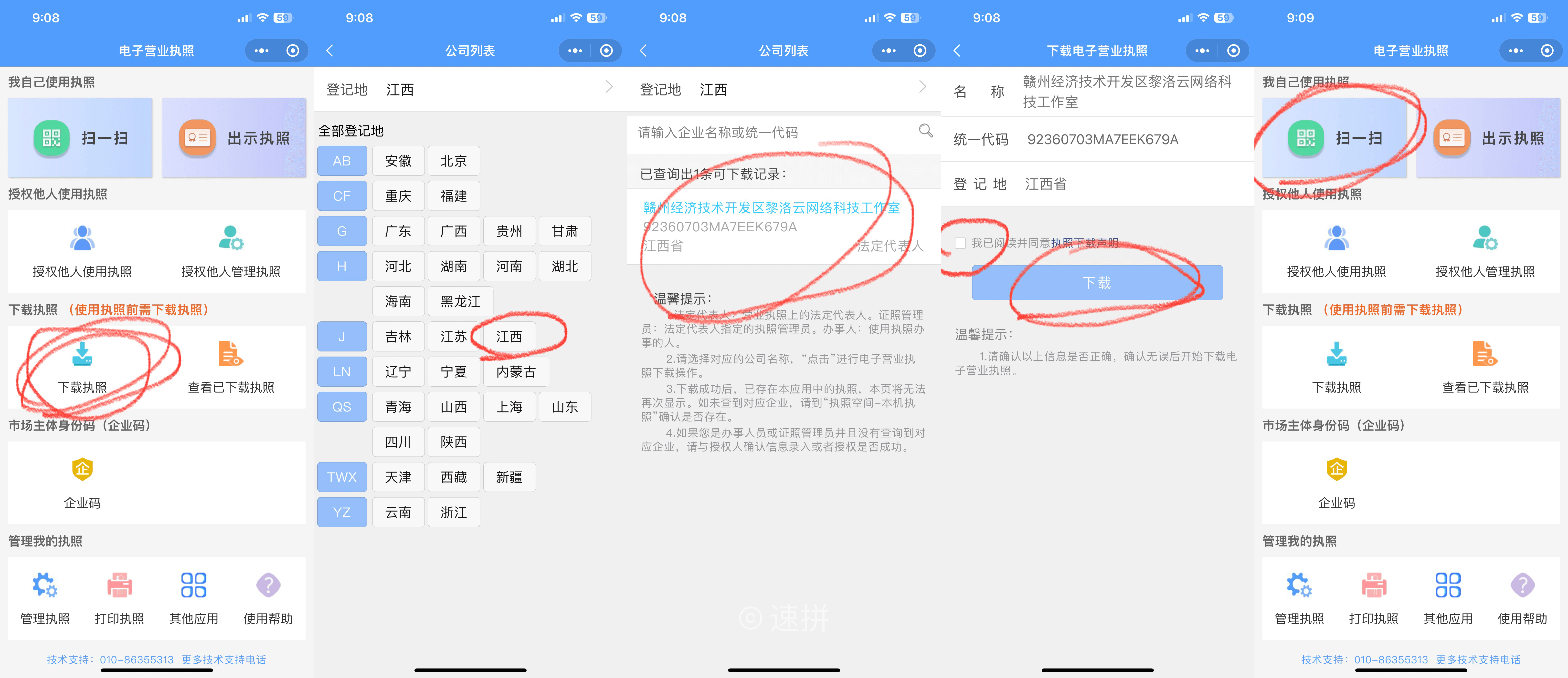 打开微信搜索小程序:电子营业执照然后登录下载扫第一步的二维码